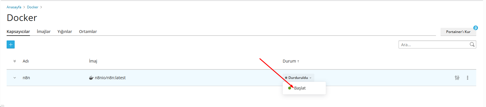 KAYDET butonuna tıklayın ve container'ı başlatın.